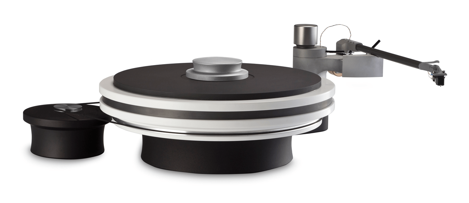 neuartig schwingungsbedämpftes Masselaufwerk und bietet eine excellente Tonwiedergabequalität. Er hat ein einzigartig ruhiges Klangbild. Bildlich beschrieben ist es eine hohe Auflösung auf tiefschwarzem Hintergrund. Das kommt dem Hörer zugute durch entspanntes und genussvolles Musikhören. Entwickelt von Dipl. Ing. Ralf Wölfel, der die Physik der Tonwiedergabe von Grund auf neu durchdacht hat. Die Technik dahinter: Jedes einzelne Bauteil ist bis an die Grenze des technisch Machbaren auf die Vermeidung von störenden Schwingungen optimiert. Mehr kann ein Plattenspieler nicht leisten.