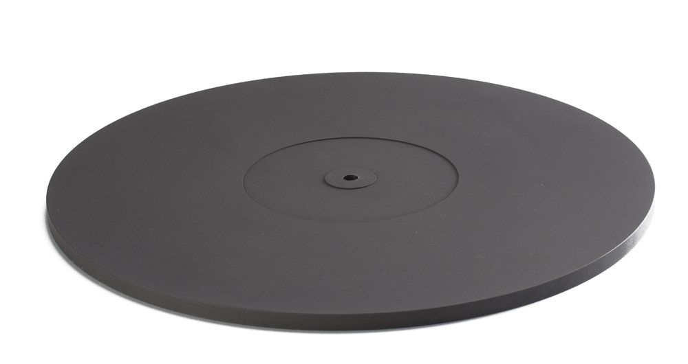 Die Plattentellerauflage besteht aus einer 8mm starken Grafitplatte und bildet zusammen mit der Plattenklemme eine Einheit, die die Schallplatte optimal anpresst und Laufruhe für das Abtastsystem bietet. Durch ihre leicht konvexe Form bildet sie einen guten Schluss zusammen mit der Klemme.