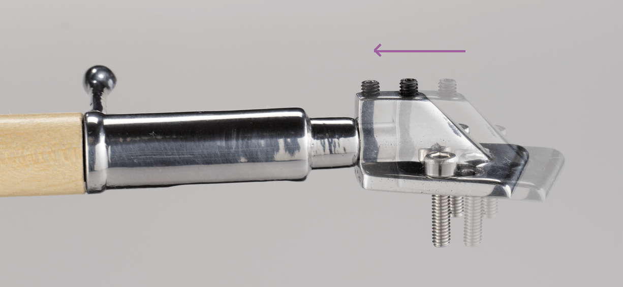 The grub screws at the top of the head shell have another purpose: they are used to adjust the azimuth. The head shell is straight at the front edge, aligned horizontally. This provides visual orientation while adjusting the cantilever/ stylus tip in the right position.